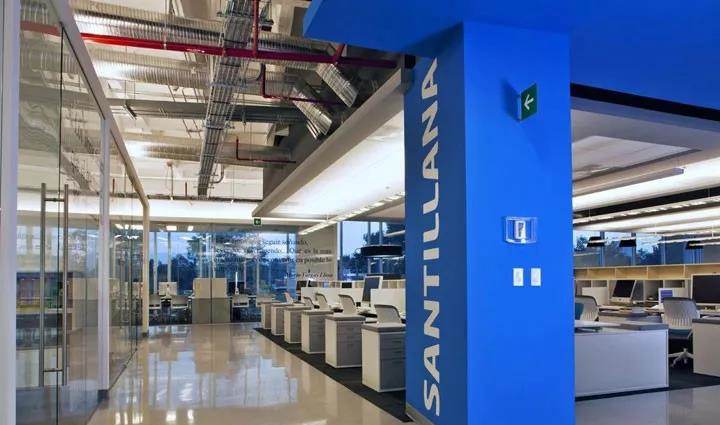 強(qiáng)烈的色彩碰撞帶來雀躍而興奮的感官體驗,純凈藍(lán)色的墻面,泛著乳白色光澤的地面,與顏色各異的椅子形成強(qiáng)烈對比,襯托出空間的色彩。極簡主義的設(shè)計手法,空間的簡單搭配與裝飾,辦公用品規(guī)整的防治,但是在頂部金屬框架的裸露,讓嚴(yán)謹(jǐn)?shù)姆諊袔Я艘唤z活波的氣息。